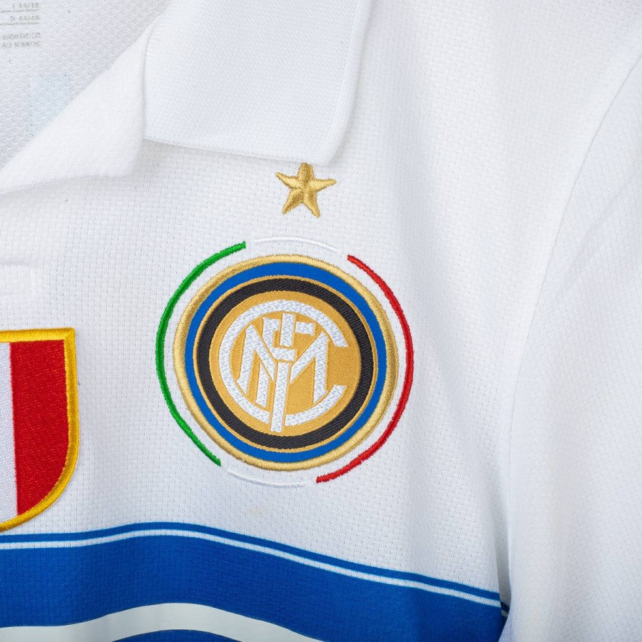Maglia away dell'Inter realizzata da Nike per la stagione 2009/2010, personalizzata con il nome Sneijder e il numero 10. Modello a manica corta di colore bianco con banda orizzontale nera e blu sul petto. Sponsor tecnico Nike ricamato, sponsor commerciale “Pirelli” stampato al centro. Stemma Inter cucito lato cuore con stella e scudetto tricolore al centro. Sul retro personalizzazione “SNEIJDER” e numero 10 in blu. Vestibilità slim. Taglia S.