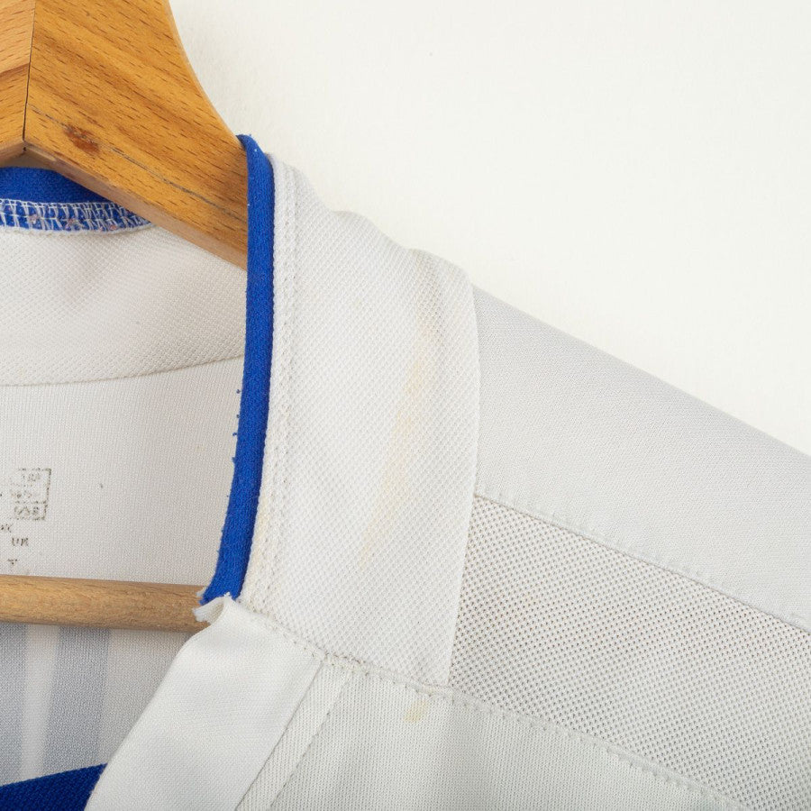 Maglia away dell'Inter indossata nella stagione 2002/2003, prodotta da Nike. Colore bianco con inserti neri e azzurri. Logo Nike ricamato sul petto destro e stemma Inter cucito lato cuore. Sponsor Pirelli applicato in flock (vellutino). Nome e numero Stanković 11 applicati sul retro in plastica di colore nero. Tessuto tecnico traspirante con vestibilità regolare. Taglia L. Maglia originale dell'epoca, divenuta iconica nei primi anni 2000.