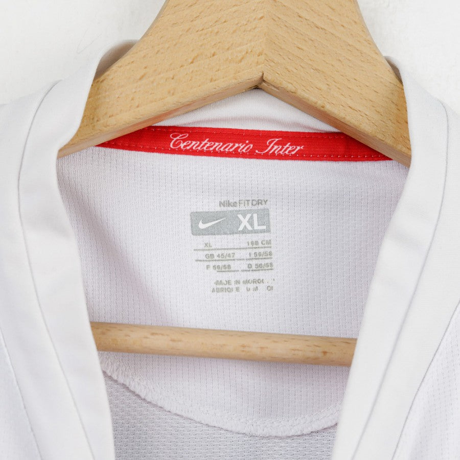 Maglia away dell'Inter stagione 2007/2008 realizzata da Nike per celebrare il Centenario del club. Il design è dominato dalla croce rossa di San Giorgio su sfondo bianco, con dettagli neri e rossi. Sul petto sono presenti lo swoosh Nike come sponsor tecnico, il logo Pirelli come sponsor commerciale e lo scudetto tricolore conquistato nella stagione precedente. Sul retro sono riportati il nome Stankovic e il numero 5 in blu con bordi neri. All'interno del colletto si legge la scritta “Centenario Inter”. Taglia XL.