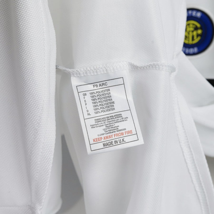 Maglia away dell'Inter stagione 1999/2000, realizzata da Nike. La divisa è completamente bianca con dettagli blu e neri sul colletto e sulle maniche. Sul petto è presente il logo Nike e lo stemma dell'Inter, mentre al centro spicca il logo dello sponsor commerciale Pirelli. Sul retro è stampato il nome "Zamorano" con la celebre numerazione "1+8", un'iconica trovata dell'attaccante cileno dopo l'arrivo di Ronaldo, che aveva preso il numero 9.
