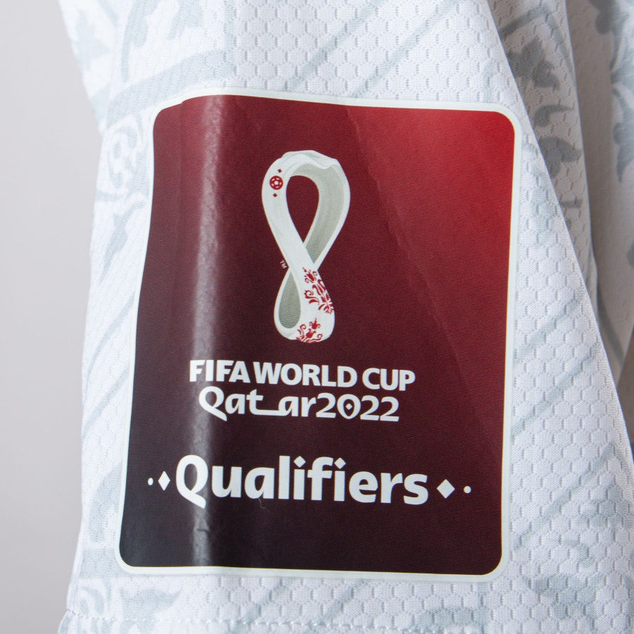 Sul retro sono stampate lettering blu INSIGNE ed il numero 10. Sulla manica destra è applicata la patch di FIFA WORLD CUP 2022 e sulla sinistra toppa Europa e Respect