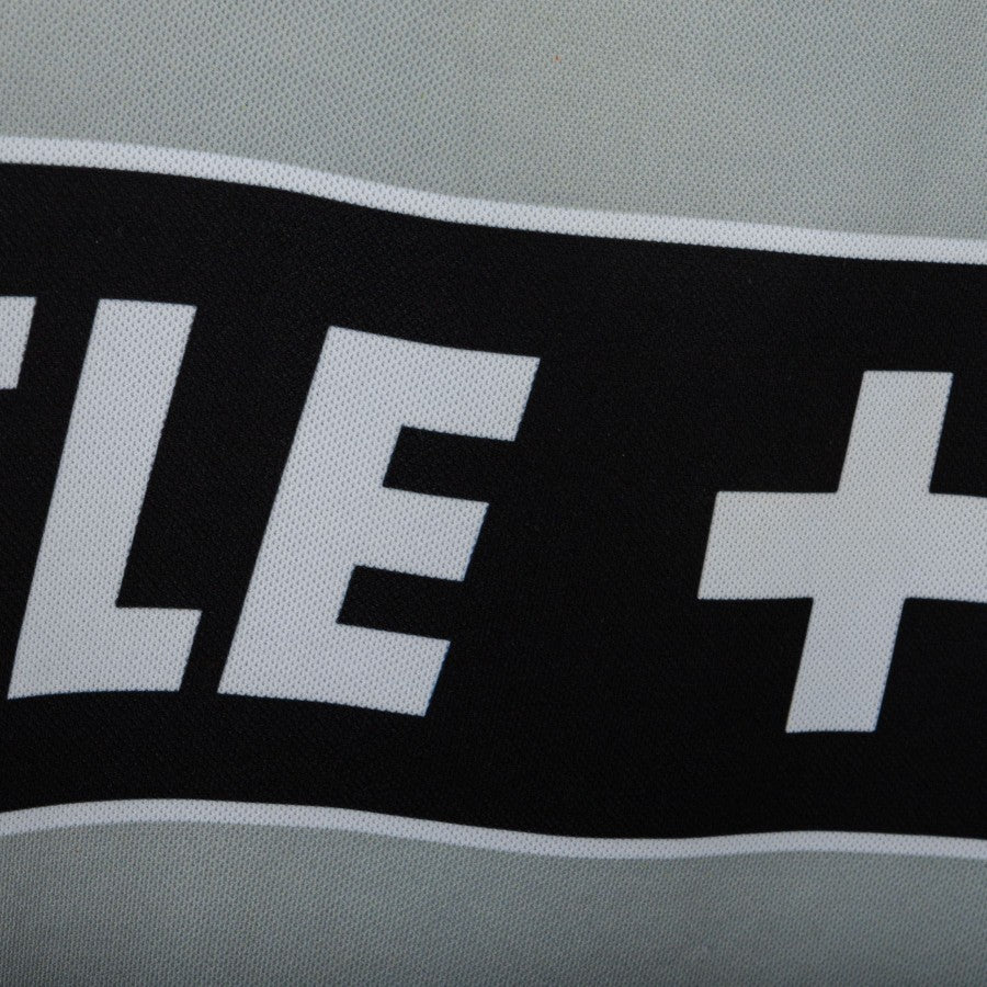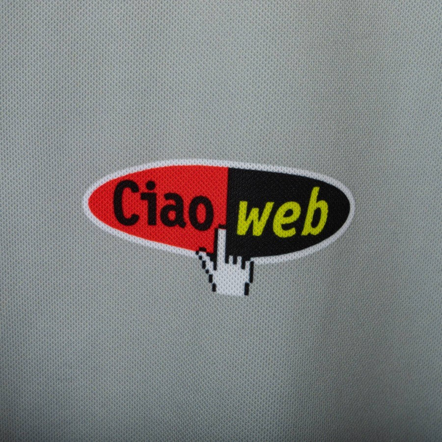 La divisa è a maniche corte di colore grigio con colletto rialzato. Stemma Juventus visibile sulla sinistra con le due stelline ricamate e Logo Ciao Web posizionato sulla destra. In basso lo sponsor commerciale Tele+. Sulla manica Toppa Lega Calcio.