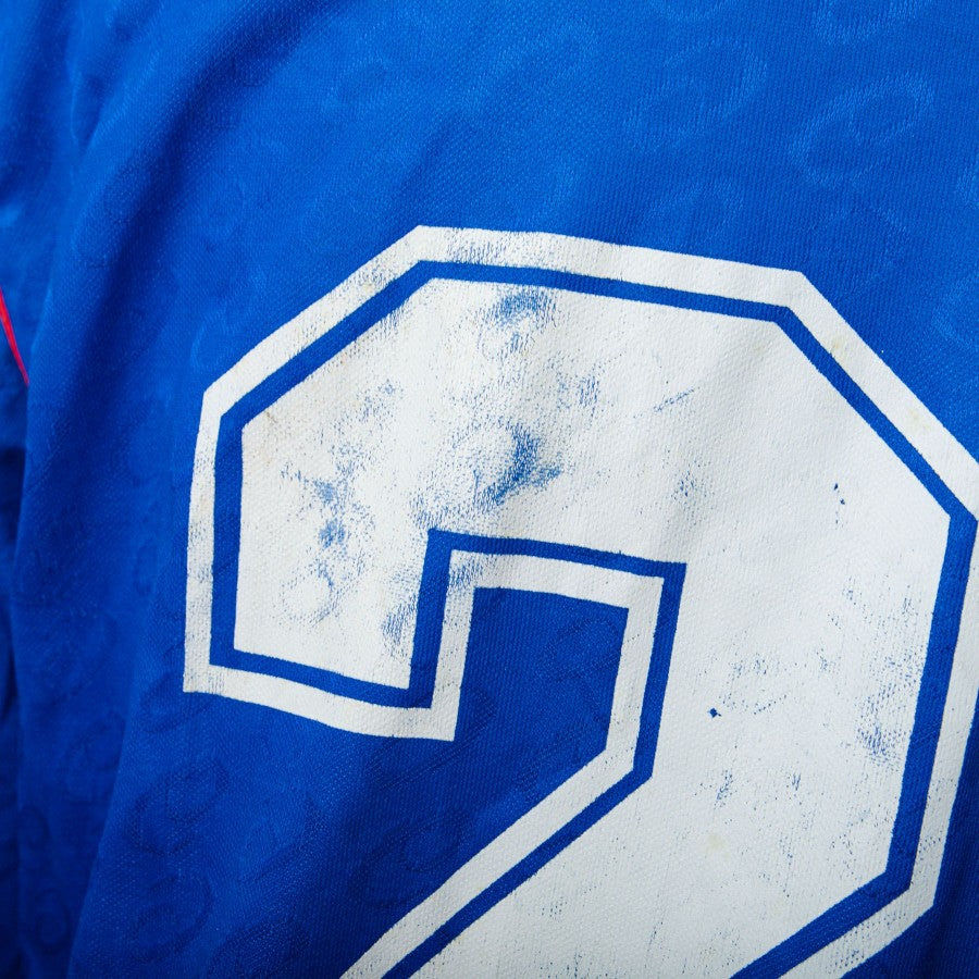 La maglia appare in buonissimo stato. Unicamente la personalizzazione presenta segni di usura. Etichetta Asics interna con la taglia XL.