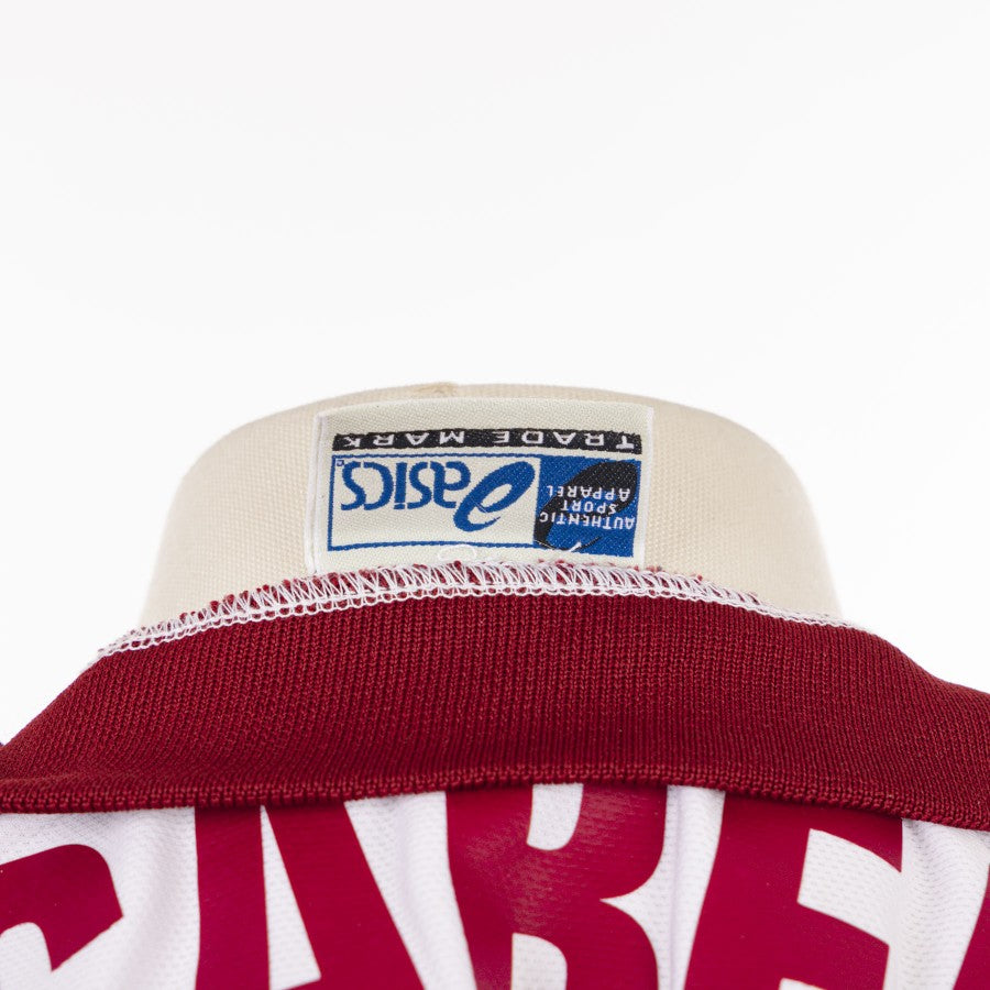maglia away livorno a maniche corte, in ottime condizioni, realizzata dallo sponsor tecnico Asics e dallo sponsor commerciale Gruppo Carige, indossata dai giocatori toscani durante la stagione 2005/2006. Personalizzazione col numero 99 Lucarelli, taglia XL