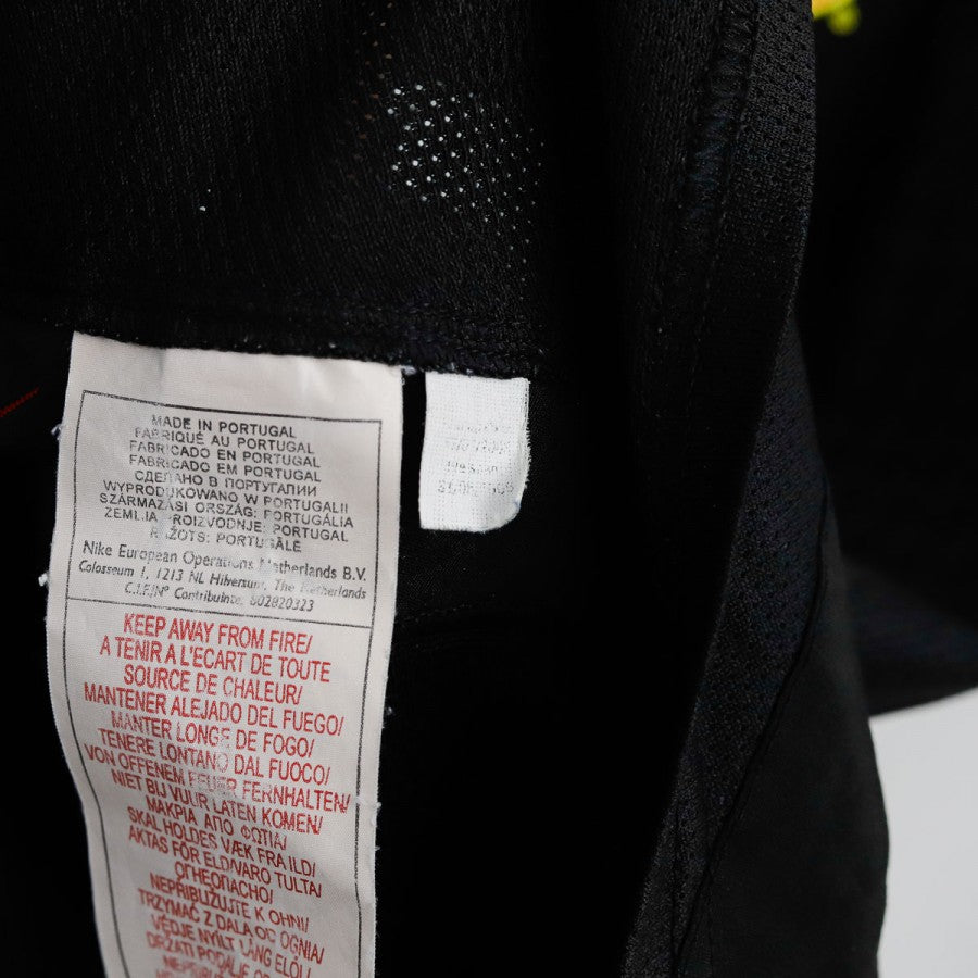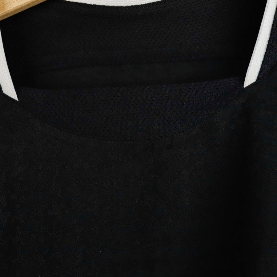Maglia away del Manchester United realizzata da Nike per la stagione 2005/2006. Versione a maniche lunghe nera con inserti bianchi sul colletto e sui polsini. Lo stemma del club è applicato sul petto insieme al logo Nike e allo sponsor Vodafone in bianco. Sul retro è presente la personalizzazione Ronaldo 7. Taglia M.