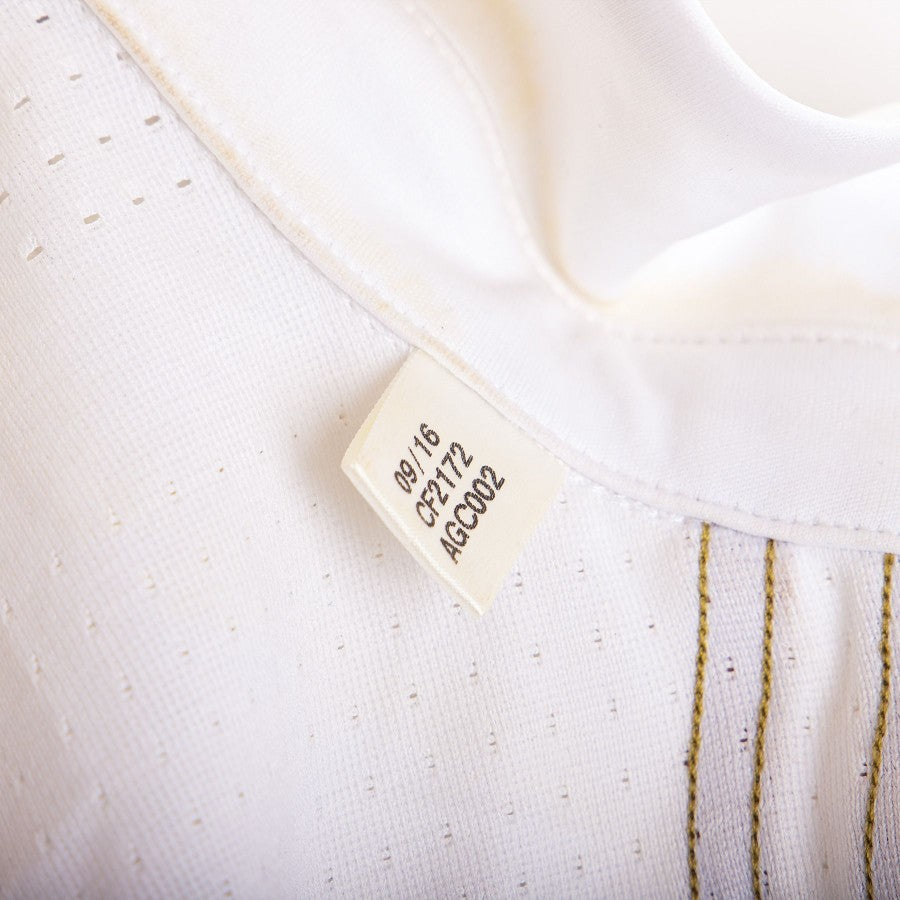 Modello di Maglia Away del Milan stagione 2016/2017 preparata/indossata da Paletta. Logo Milan cucito. Lo sponsor Fly Emirates è stampato. Lo sponsor tecnico Adidas è stampato. Sul retrocollo è termoapplicata in oro la personalizzazione di Paletta col numero 29. Sulla manica destra c'è la patch Serie A mentre sulla sinistra c'è quella della Champions.