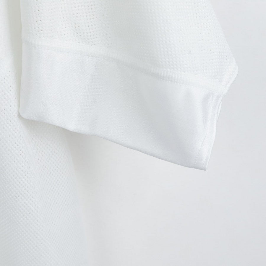 La maglia Away ufficiale del Milan per la stagione 2004/2005, prodotta dallo sponsor tecnico Adidas, rappresenta un classico del calcio internazionale. Questo modello si distingue per il design elegante, con una base bianca arricchita da dettagli rossi e neri sulle spalle, il logo Adidas sul petto e lo sponsor commerciale Opel in nero al centro. Sul lato sinistro è presente lo stemma del Milan con la stella dorata, simbolo delle vittorie nazionali, mentre sul lato destro si trova lo Scudetto celebrativo della vittoria del campionato 2003/2004.
