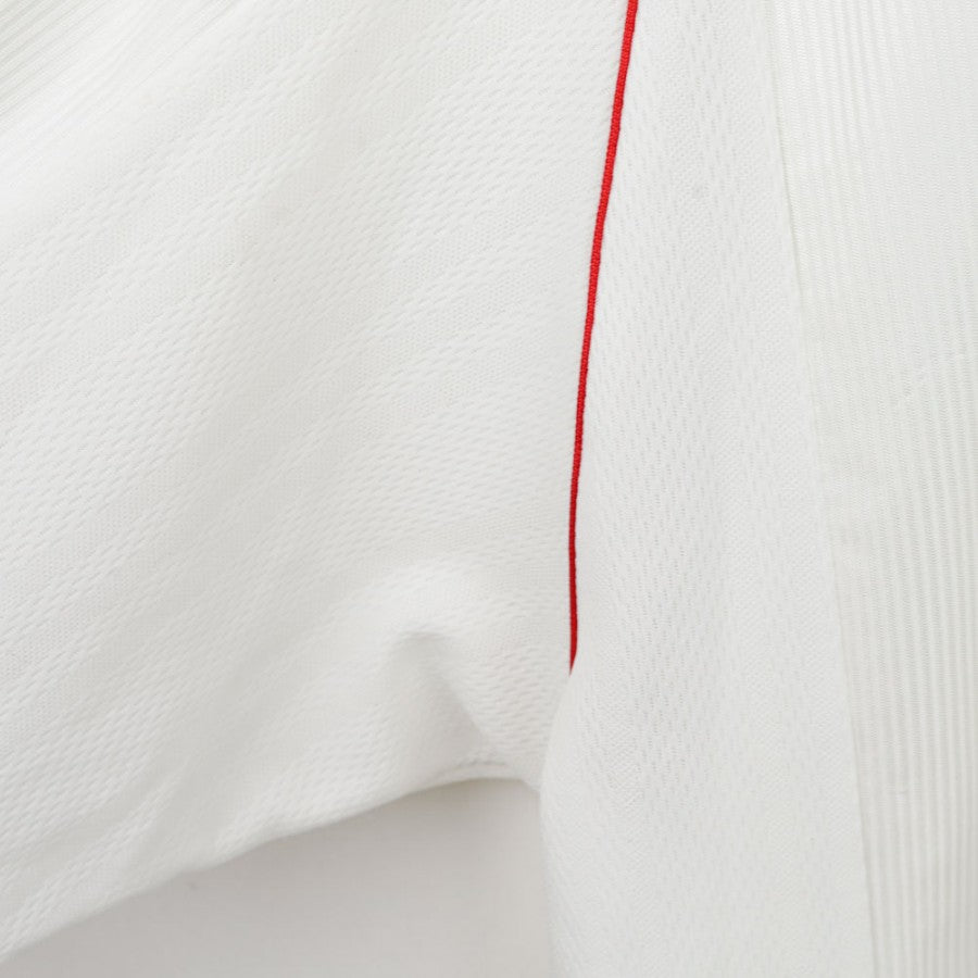 Maglia Away Milan Adidas Weah 9 1998/1999. Prodotta da Adidas, la maglia presenta il classico sponsor commerciale Opel al centro del petto, accompagnato dallo stemma del Milan con stella e dal logo Adidas. Il design è caratterizzato da una base bianca con dettagli rossi e neri su colletto, spalle e maniche. Il colletto è alla coreana con apertura a V. Sul retro sono presenti il nome Weah e il numero 9. La taglia indicata è XL.