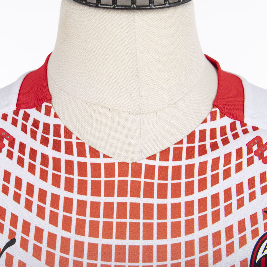 Modello manica corta bianco. Maglia singolare perché caratterizzata dall omaggio al Mudec, museo e centro espositivo dedicato alla ricerca e comprensione delle culture del mondo. Sull'ormai tradizionale bianco spicca un pattern rosso sfumato che riprende le finestre del palazzo che ospita il centro culturale.