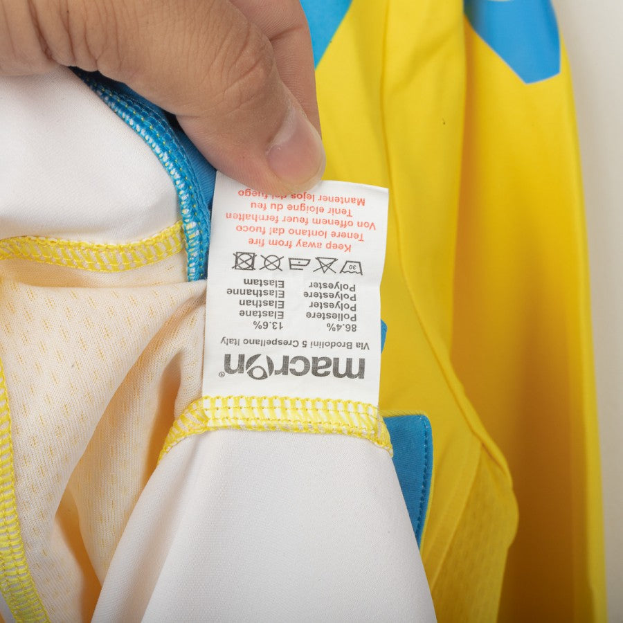 Maglia Away Napoli Macron Insigne 24 ML 2013/2014, taglia non specificata, a maniche lunghe. Realizzata dallo sponsor tecnico Macron, la maglia è di colore giallo con una fascia diagonale azzurra, lo stemma SSC Napoli sul petto e gli sponsor commerciali Lete e MSC al centro. La manica presenta la patch ufficiale della Serie A TIM. Sul retro sono presenti il nome L. Insigne e il numero 24 in azzurro.