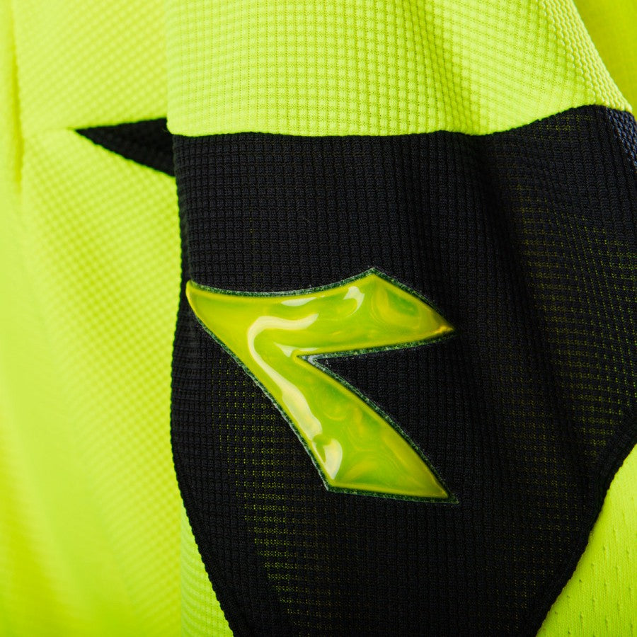 Al centro sul fronte sono presenti i loghi del club e degli sponsor tecnici e commerciali. Partendo da sotto il collo