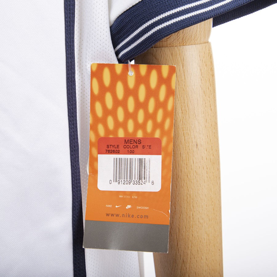 La maglia away realizzata da Nike per la stagione 1999/2000, si presenta in perfette condizioni, il tessuto è eccellente e presenta le caratteristiche originarie, dalle cuciture intatte,i colori vividi, non presenta aloni e discontinuità di colore. Esente da macchie o imperfezioni. Presente il cartellino che certifica l'integrità del prodotto. Taglia L.