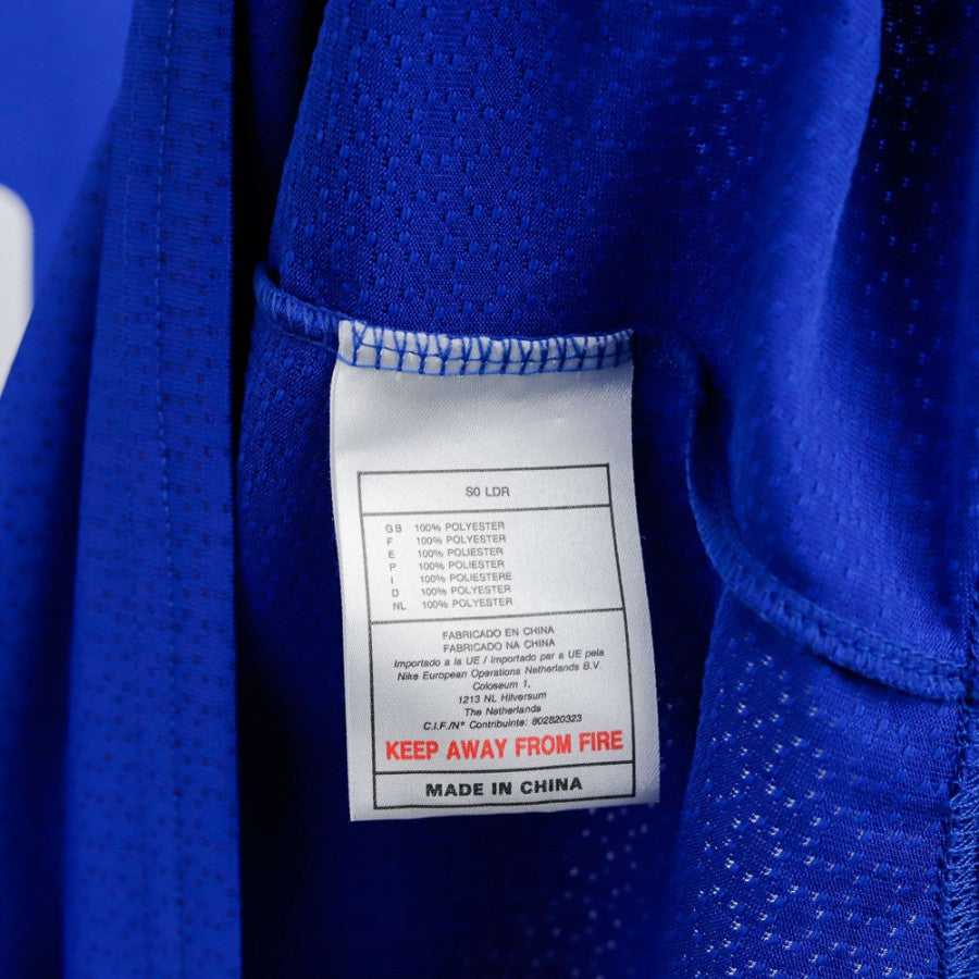 Maglia Away Nike Brasile Romario 11 2000, realizzata con il logo tecnico Nike e lo sponsor della federazione brasiliana. Taglia non indicata. Design semplice e iconico in blu con dettagli bianchi. Romario, autentico genio del gol, ha lasciato il segno nella storia della Seleção con il suo talento immenso. Questa divisa richiama il Brasile che stava preparando il ciclo vincente culminato nei Mondiali successivi.