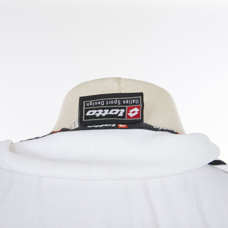 Maglia Away Palermo della Lotto a manica corta indossata da il calciatore Jeda 30 nella stagione calcistica 2003/2004. Maglia di colore bianco con dettagli in rosa.