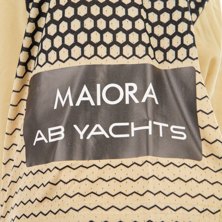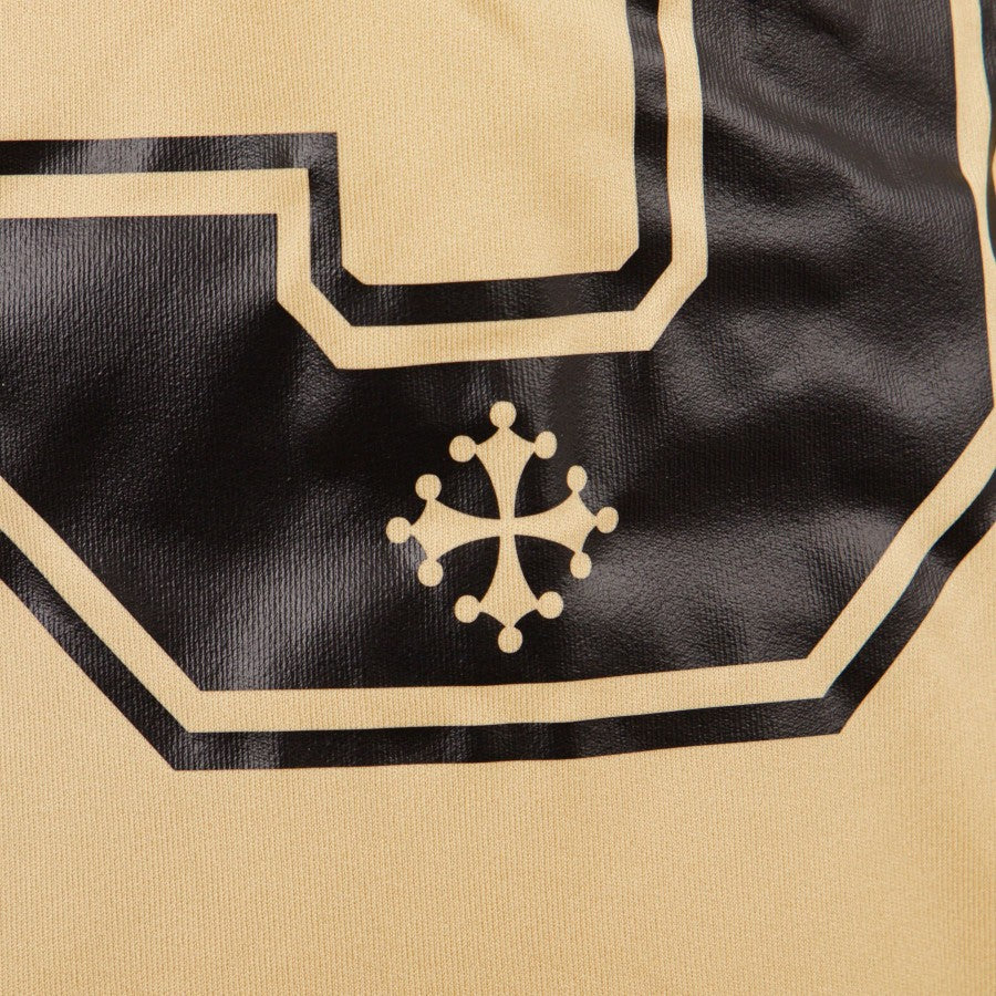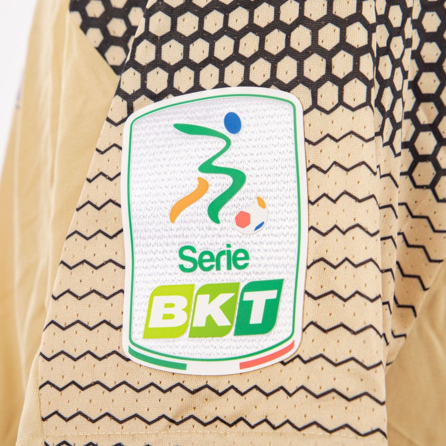 La casacca della squadra toscana è in oro, con disegni geometrici ed inserti in nero.