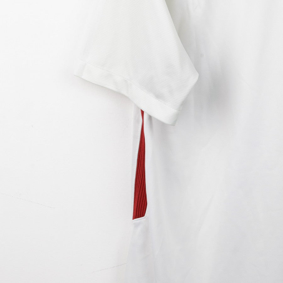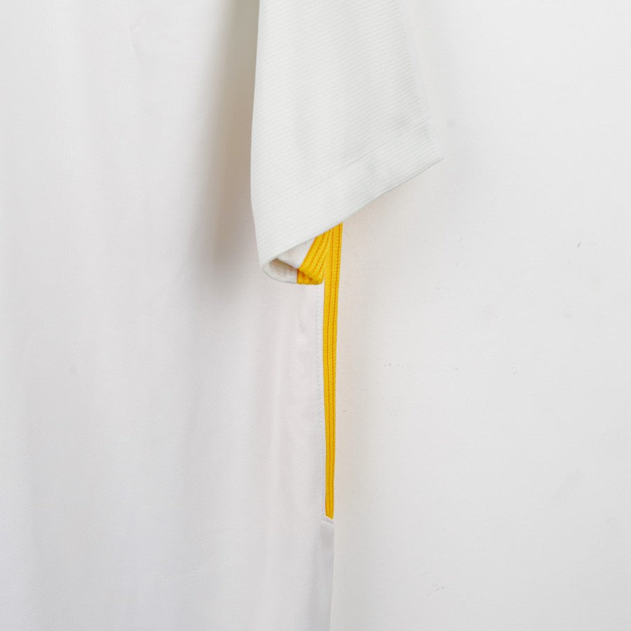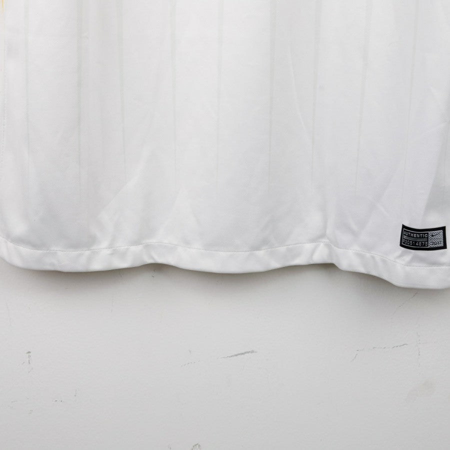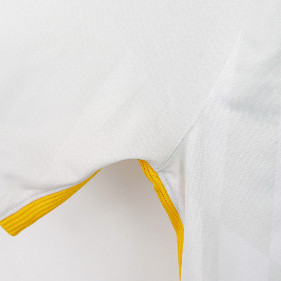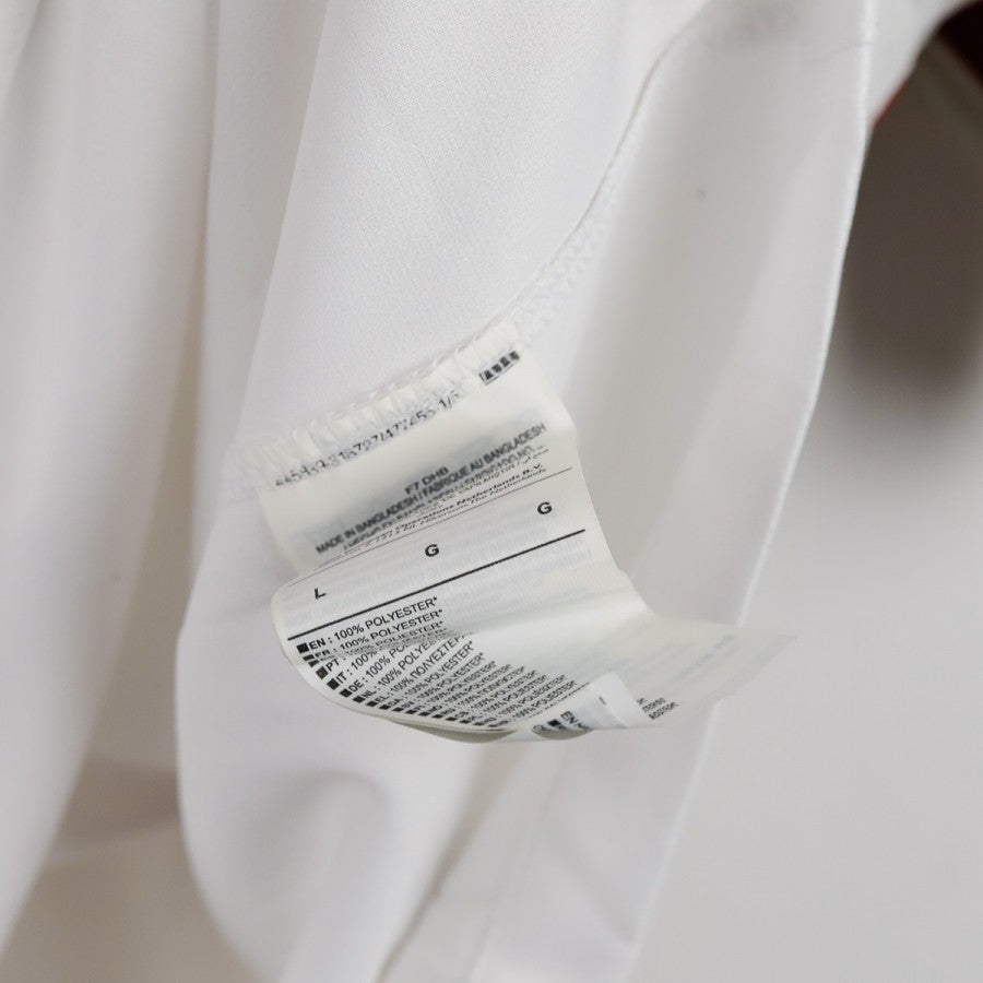 Maglia Away Roma Nike 2017/2018, taglia L, realizzata dallo sponsor tecnico Nike in elegante bianco con dettagli giallorossi su spalle e fianchi. Sul petto sono presenti lo stemma dell'AS Roma e lo swoosh Nike, mentre all'interno del colletto è riportata la scritta “ROMA SIAMO NOI”, emblema dell'identità romanista. Il design sobrio e moderno contraddistingue questa divisa da trasferta utilizzata durante la stagione 2017/18, un'annata storica in cui la Roma, allenata da Eusebio Di Francesco, raggiunse una straordinaria semifinale di Champions League, eliminando il Barcellona con una delle rimonte più memorabili della storia del club.
