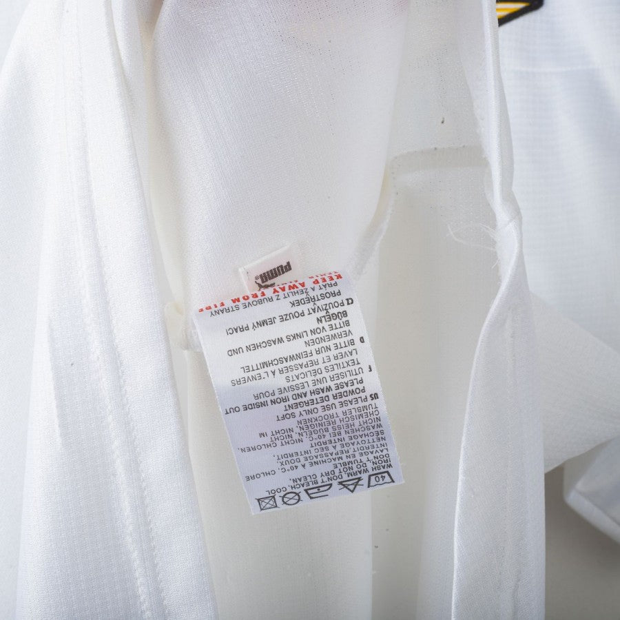 Maglia celebrativa del centenario della S.S. Lazio, stagione 1999/2000, realizzata da Puma. Modello home bianco con dettagli celesti e gialli su spalle e colletto. Sponsor CIRIO stampato in flock nero sul petto, logo Puma in flock. Colletto a V con profili a contrasto e scritta “S.S. LAZIO 1900” ricamata all'interno. Stemma Lazio cucito sul petto. Personalizzazione Stankovic n°20 sul retro in nero, in flock. Patch “Authentic Team Apparel” applicata in basso. Taglia XL, maniche corte.