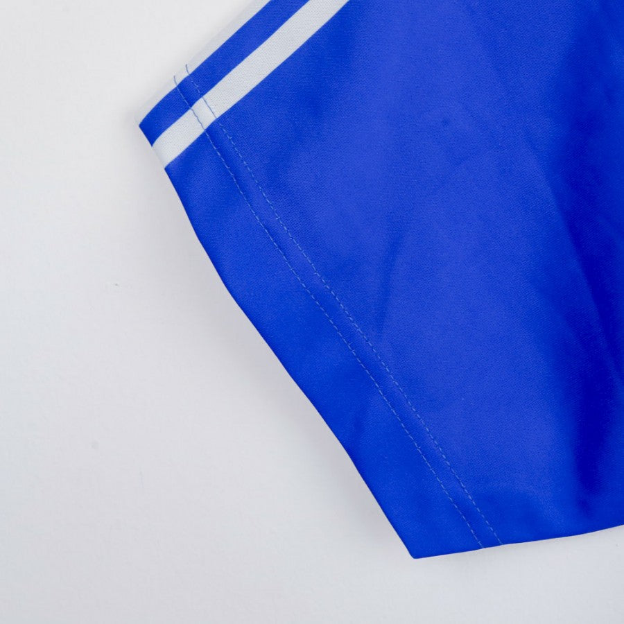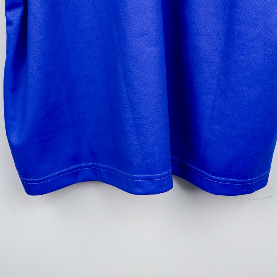 Maglia della squadra Cesena realizzata da Adidas per la stagione 1999/2000. La maglia si presenta in colore blu royal con colletto a punta bianco con le three stripes tradizionali di adidas nere. Lo stemma della società è applicato come il logo dello sponsor tecnico Adidas, entrambi sul petto. Il logo Adidas ripetuto anche sul retro in dimensioni più grandi. Taglia XL.