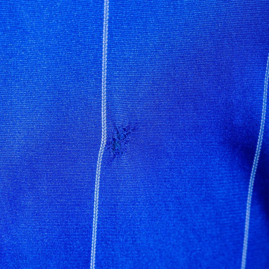 Maglia del Chelsea stagione 1981/1982 modello Home a manica corta di colore blu con inserti bianchi e rossi. Sul fronte, al centro, è cucito il logo squadra mentre sulle maniche sono applicati i loghi Le Coq Sportif.