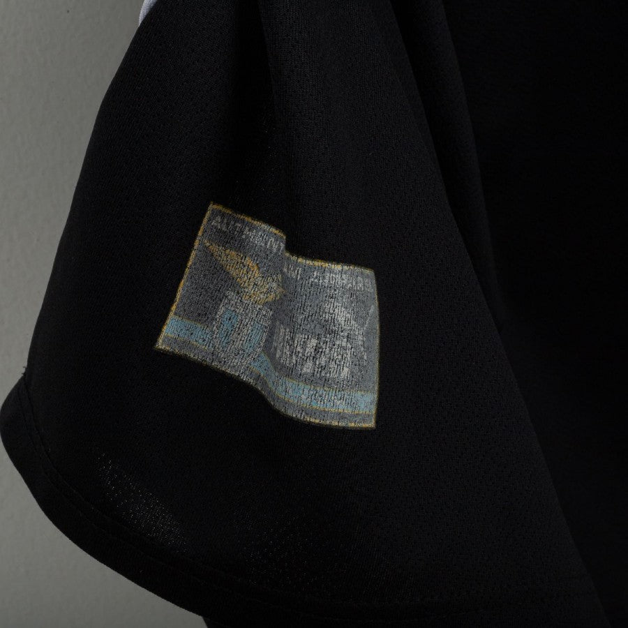 Maglia fourth della S.S. Lazio indossata nella stagione 1999/2000, prodotta da Puma per celebrare il centenario del club. Colore nero con inserti celesti e bianchi su spalle e fianchi. Logo Puma in bianco al centro del petto in flock, stemma S.S. Lazio cucito lato cuore. Sponsor CIRIO in bianco con dettaglio verde e blu in flock sul fronte. Sul retro, nome “Nesta” e numero 13 in celeste bordato di nero, con scritta “S.S. Lazio” ricamata all'interno del colletto. Vestibilità regolare. Taglia L.