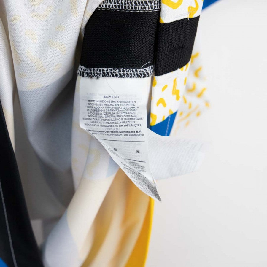 Lo stemma del club è cucito sul petto, il logo Nike è ricamato e lo sponsor Pirelli è applicato.