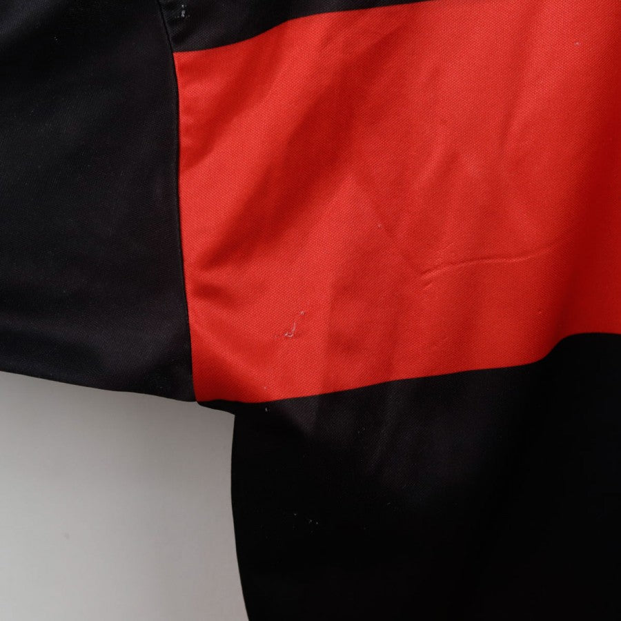Maglia home ufficiale del Flamengo per la stagione 1987/1988, realizzata da Adidas. Il classico design a strisce orizzontali rosse e nere è arricchito dalle iconiche tre strisce Adidas sulle spalle e sulle maniche. Lo sponsor commerciale Lubrax è presente sul retro, sopra il grande numero 10 bianco, reso celebre dai campioni che hanno vestito questa maglia. Il logo Adidas con il trefoil è stampato sotto il numero.