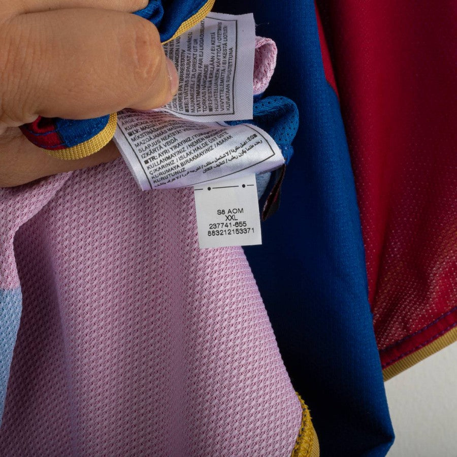 Maglia ufficiale home del FC Barcellona prodotta da Nike per la stagione 2007/2008, con personalizzazione Lionel Messi numero 19. Design blaugrana a bande verticali rosse e blu con dettagli dorati. Sul petto, lo sponsor UNICEF in giallo e lo stemma speciale celebrativo del 50º anniversario del Camp Nou (1957-2007). Patch originale LFP cucita sulla manica. Logo Nike ricamato lato destro e stemma FCB ricamato lato cuore. Tecnologia Nike FitDry per garantire leggerezza e traspirabilità. Maglia storica, indossata da Messi nei suoi primi anni al Barcellona, prima di ereditare la leggendaria numero 10. Taglia XXL.