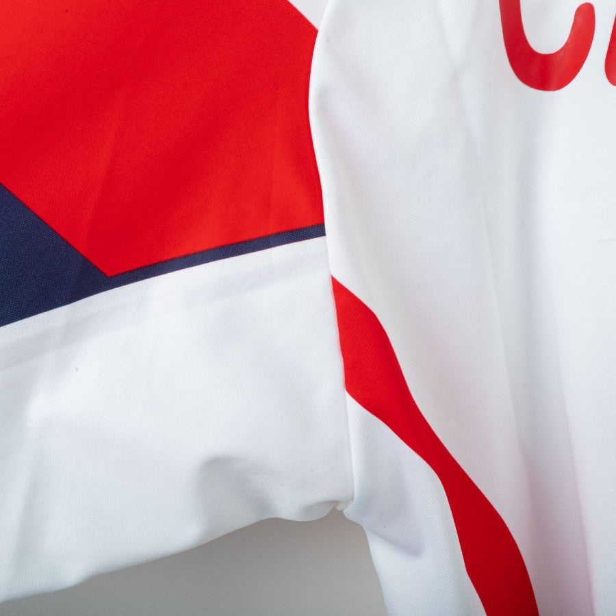 Maglia home ufficiale del Bari stagione 1999/2000 prodotta da Lotto. Divisa iconica indossata nella stagione d'esordio in Serie A di Antonio Cassano, con sponsor tecnico Lotto e sponsor principale TELE+. Design bianco con dettagli rossi, logo del club ricamato e patch Lega Calcio sulla manica. La Maglia appartiene alla collezione personale di un ex fotografo ed era in un quadro. Il COA sarà inviato con l'acquisto della maglia.