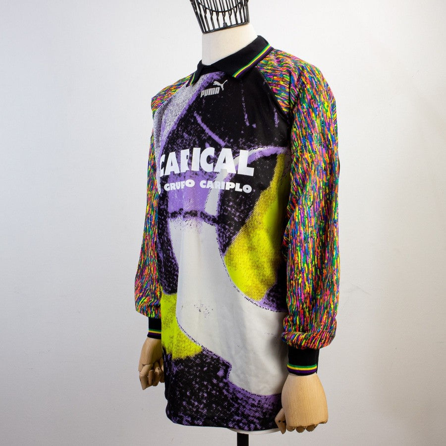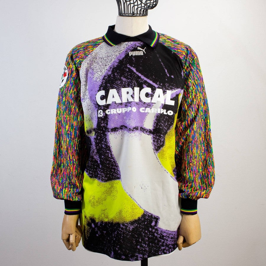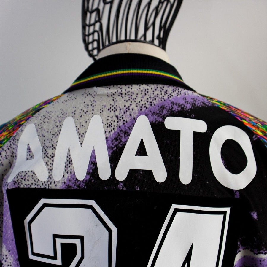 Maglia portiere vintage in condizioni perfette, anno 96/97, nome e numero Amato 24. Colori vivaci e accesi, sponsor tecnico (Puma) frontale leggermente scolorito dal tempo, sponsor commerciale Carical. Sponsor tecnico su numero Hummel.
