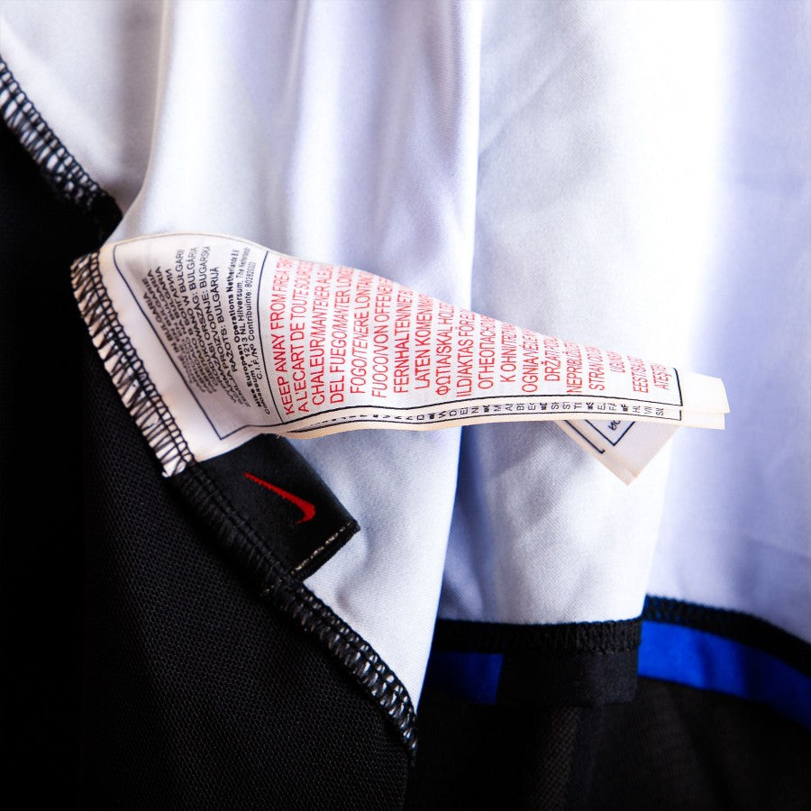 Maglia a maniche corte dell'Inter modello Home nerazzurra con inserti in giallo - fornitura squadra- di Fabio Cannavaro. Sul fronte è applicato in flock in bianco il logo dello sponsor commerciale Pirelli al centro; sul lato cuore è cucito il logo Inter e sul lato destro quello della Nike; sulla manica destra è cucita la patch Champions League. Sul retro, in bianco, sono applicati la lettering Cannavaro e il numero 13. La maglia si riferisce alla gara di Champions tra Inter e Lione del 2 ottobre 2002.