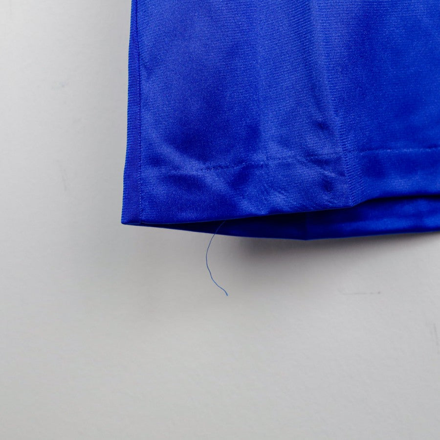 Modello di colore blu con collo a V e bande laterali con i colori della squadra. Stemma squadra ricamato lato cuore e logo Adidas applicato sulla destra.