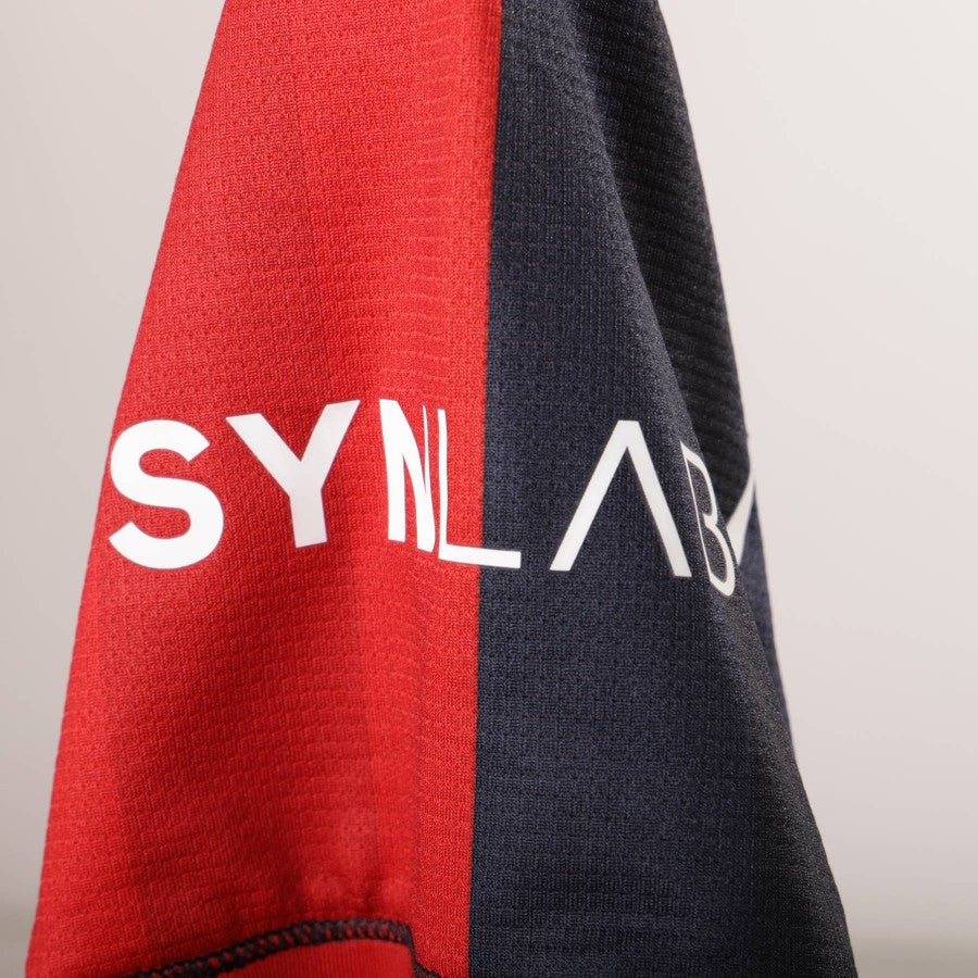Maglia in versione home del Genoa della stagione calcistica 2020/2021. Modello di colore rosso e blu navy, girocollo con bottone e mezza manica. Sul fronte della maglia, sono applicati la patch della squadra lato cuore, il logo dello sponsor tecnico kappa sulla destra, che ritroviamo anche sulle due maniche e, al centro, lo sponsor commerciale Banca Sistema. Sul retro, sono stampate lettering dorate STROOTMAN ed il numero 20, oltre al secondo sponsor commerciale LeasePlan in fondo. Infine sulla manica destra è applicata la patch di Serie A e sulla sinistra lo sponsor Synlab.