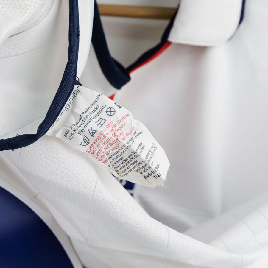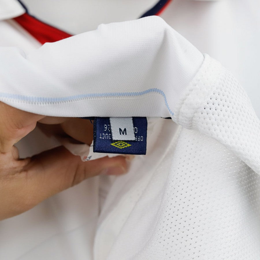 Maglia Home Inghilterra Umbro Owen 10 2004, taglia M. Realizzata da Umbro, presenta il logo della nazionale inglese sul petto e il numero 10 con nome Owen sul retro. Lo sponsor tecnico Umbro è visibile sia sul fronte che sulle etichette interne. Questa maglia è legata a UEFA Euro 2004, torneo in cui l'Inghilterra mostrò grande potenziale ma fu eliminata ai rigori dal Portogallo nei quarti di finale.