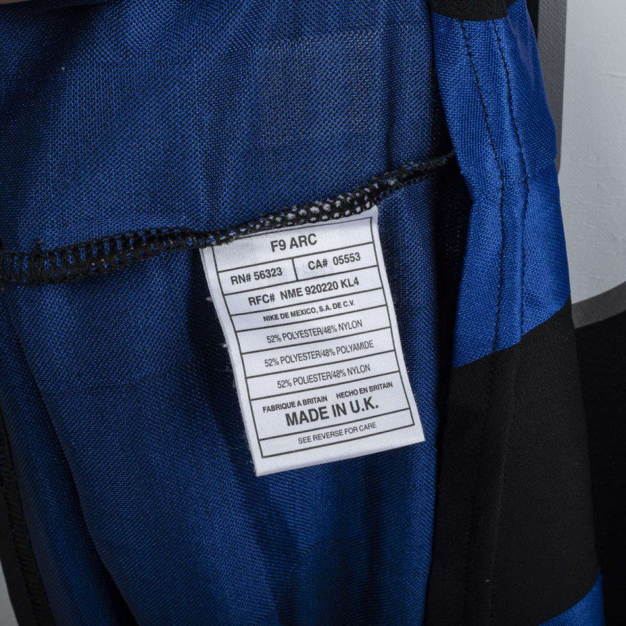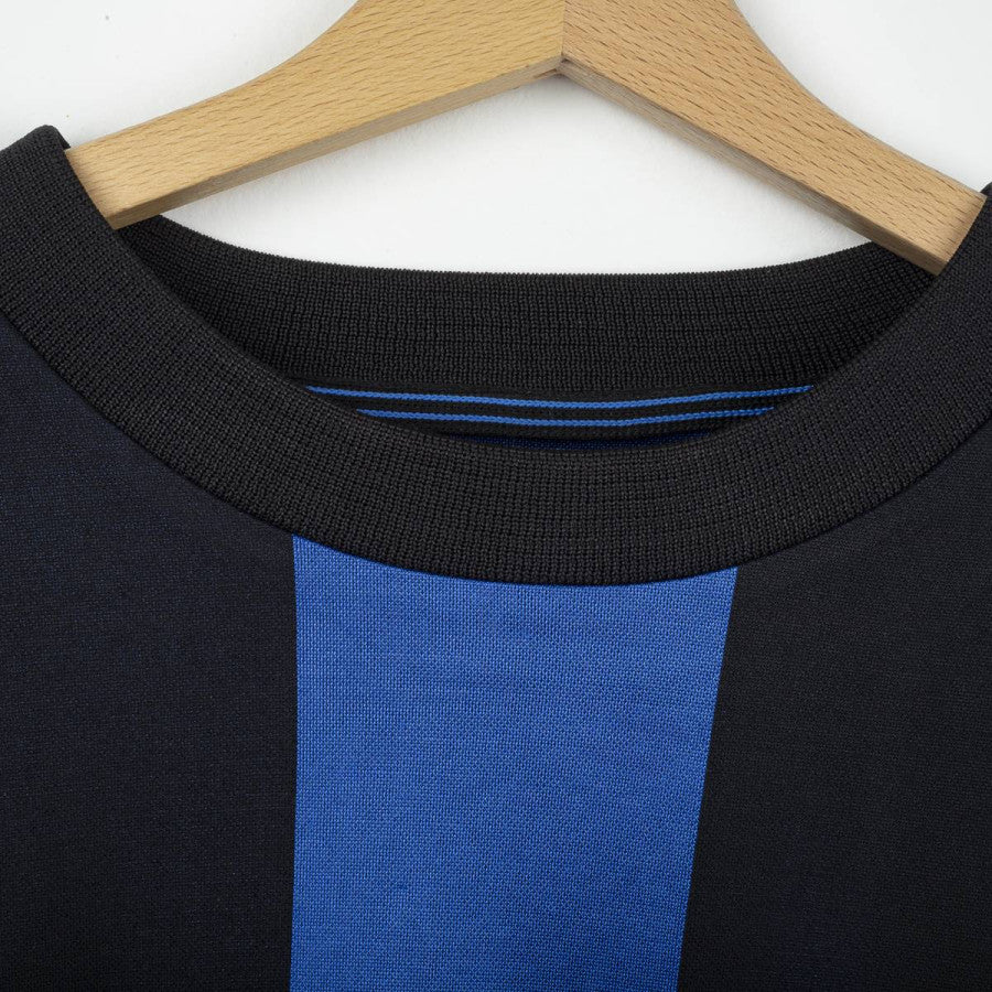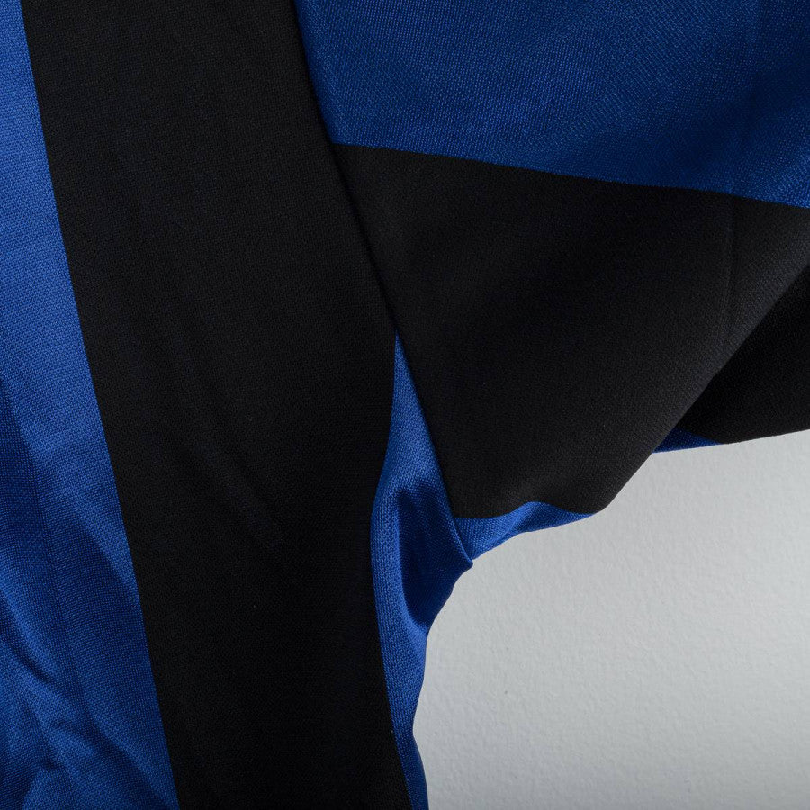 Maglia home dell'Inter utilizzata nella stagione 1999/2000, prodotta da Nike. Design classico a strisce nerazzurre verticali con colletto nero. Stemma Inter cucito lato cuore e swoosh Nike ricamato in giallo lato destro. Sponsor Pirelli stampato al centro del petto in bianco. Nome Baggio e numero 10 applicati sul retro in stampa bianca con bordatura argentata. Vestibilità regolare. Taglia XL.