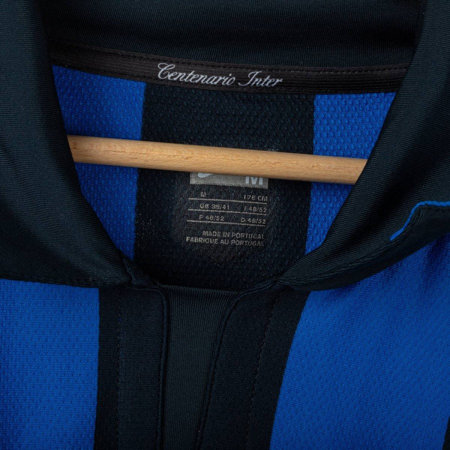 Maglia home dell'Inter prodotta da Nike per la stagione 2007/2008, personalizzata con il nome Cruz e il numero 9. Modello celebrativo del centenario (1908-2008), a manica corta, con le tradizionali strisce nerazzurre. Sul petto scudetto tricolore, logo Nike ricamato e sponsor commerciale “Pirelli” applicato al centro. Stemma speciale per i 100 anni cucito lato cuore. Sul retro è presente la personalizzazione “CRUZ” e il numero 9 in bianco, oltre al logo commemorativo del centenario sotto il colletto. Vestibilità regolare. Taglia M.