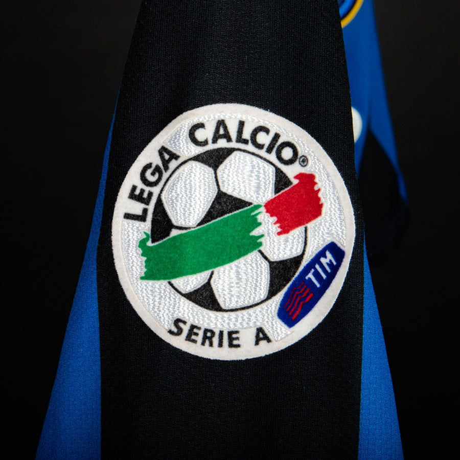 La divisa è a maniche corte a strisce verticali nerazzurre. Centrale abbiamo lo scudetto ricamato, sulla sinistra Stemma Inter e lato opposto quello della Nike. Sulle maniche Coccarda Coppa Italia e Toppa Lega Calcio Serie A.