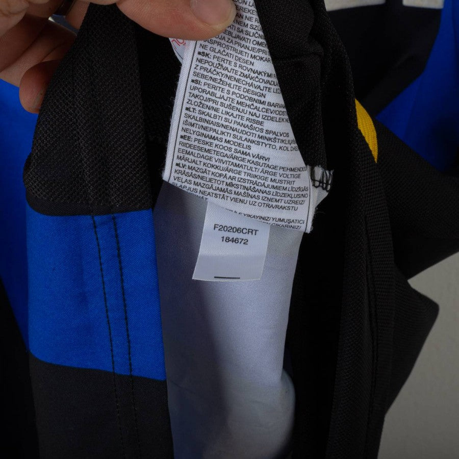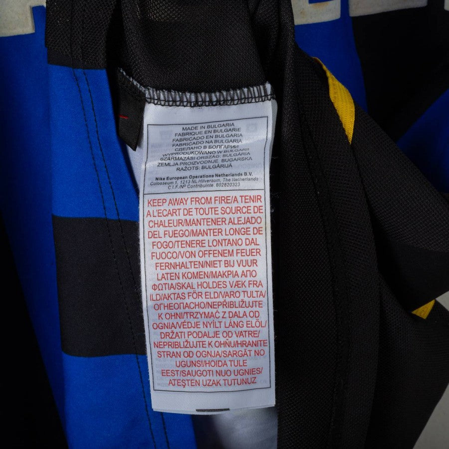 Maglia casalinga dell'Inter stagione 2002/2003, prodotta da Nike. Classiche strisce verticali nerazzurre con dettagli gialli su maniche e fondo. Sponsor Pirelli e logo Nike applicati. Stemma dell'Inter applicato sul petto. Nome "Recoba" e numero 20 applicati sul retro in stile ufficiale. Vestibilità ampia, taglia XL.