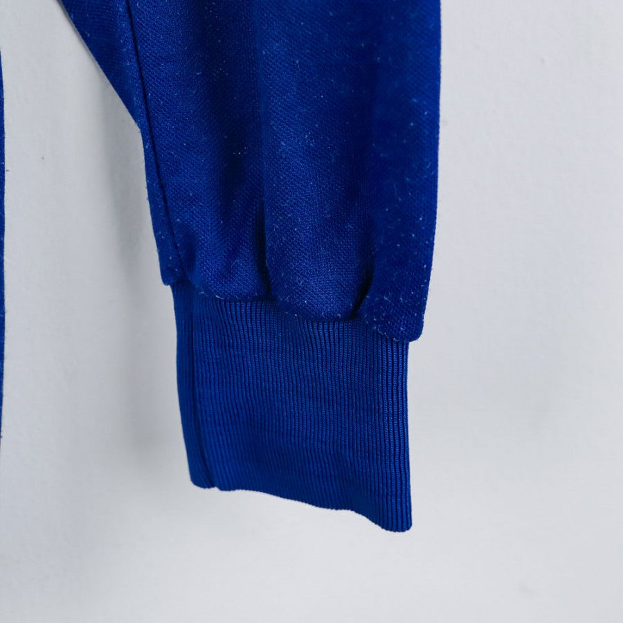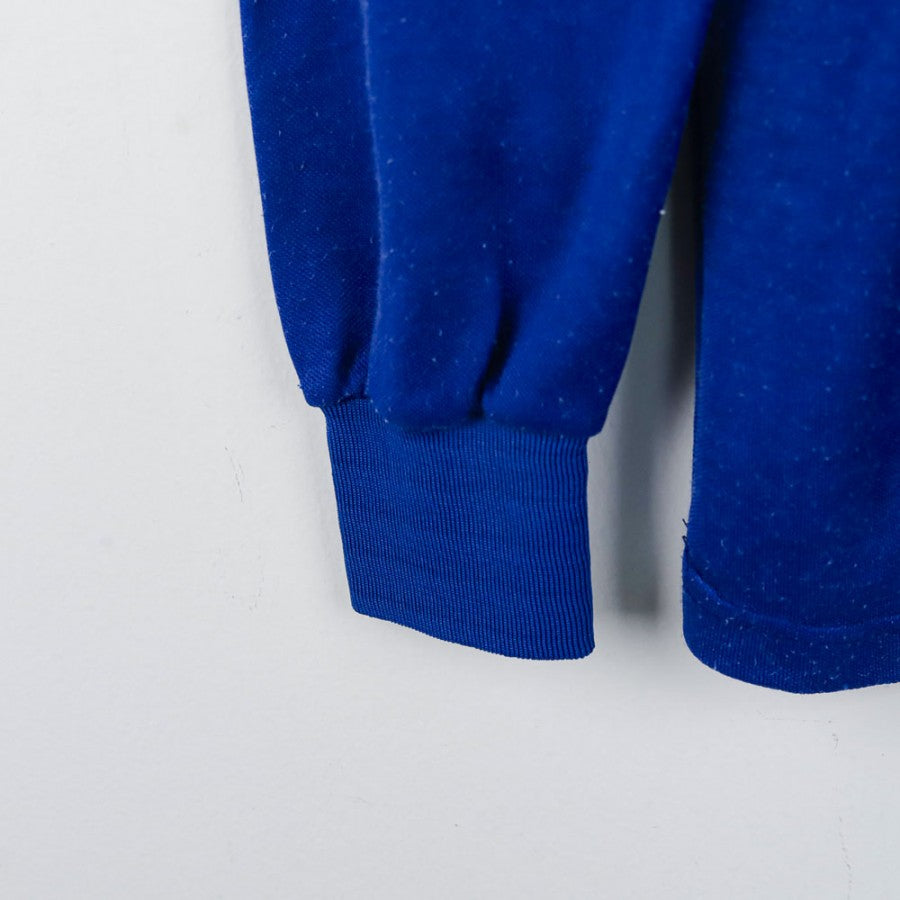 Maglia ufficiale dell'Italia, prodotta da Diadora per la stagione 1986. Questo iconico pezzo da collezione presenta il classico colore azzurro con dettagli tricolore sul colletto e sulle maniche. La taglia disponibile è M perfetta per collezionisti o appassionati che vogliono rivivere lo stile autentico degli anni '80. Il logo ricamato e i dettagli fedeli all'originale fanno di questa maglia un must-have per ogni tifoso dell'Italia.