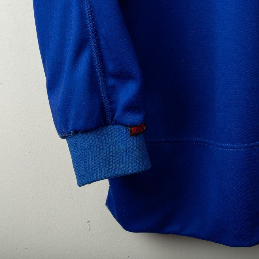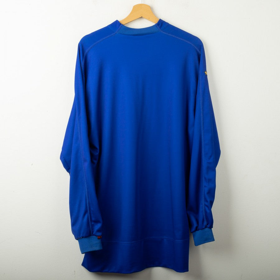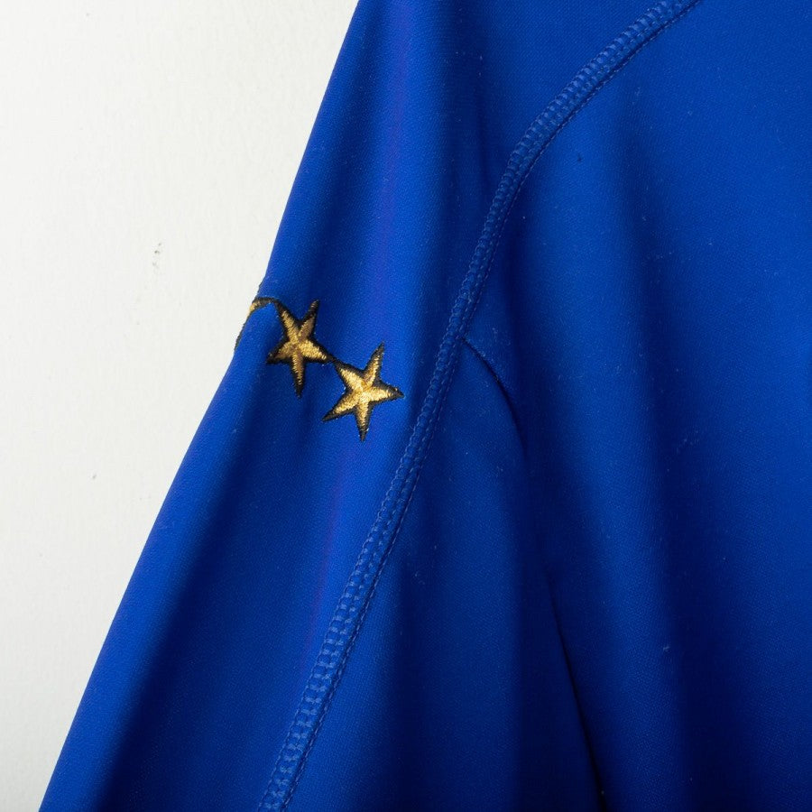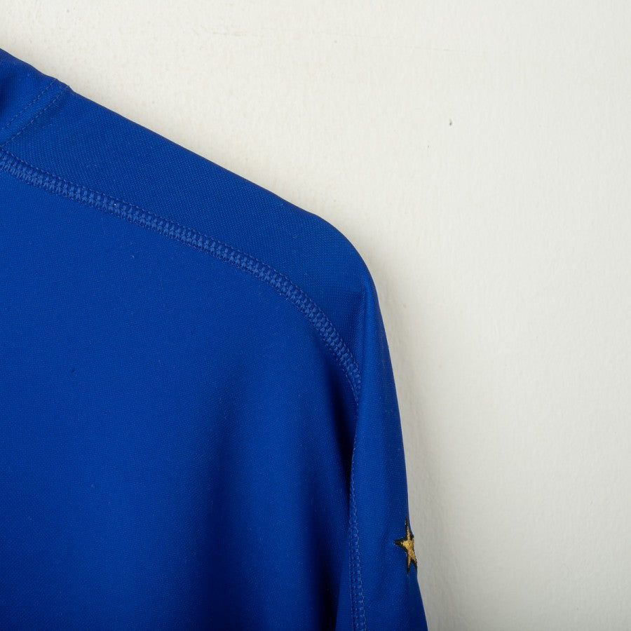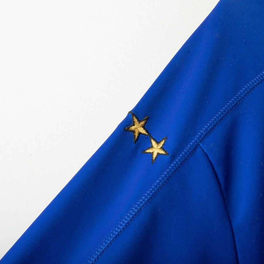 Maglia Home Italia Kappa 1999/2000 a manica lunga, realizzata dal brand Kappa con logo tecnico presente sul petto. Lo stemma della Nazionale Italiana campeggia sul lato cuore. Taglia L.