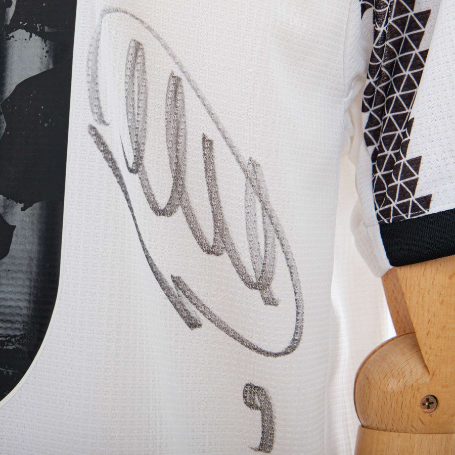 Sul retro della maglia spicca la scritta "VLAHOVIĆ", che ritorna con il suo numero 9. autografato dal giocatore e il logo dello sponsor Cygames posizionato leggermente più in basso.