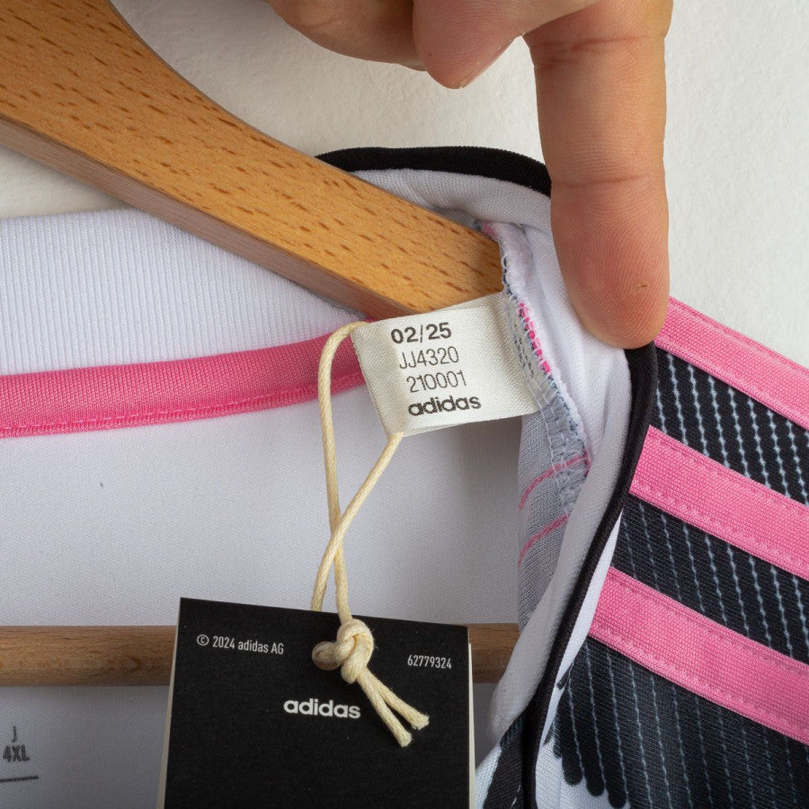 Maglia home ufficiale della Juventus per la stagione 2025/2026, prodotta da Adidas. Classico design a strisce verticali bianconere con dettagli rosa sulle spalle. Logo Adidas e stemma Juventus ricamati sul petto, sponsor Jeep applicato al centro e patch Serie A Enilive sulla manica destra. Nome e numero “Yildiz 10” stampati sul retro. Realizzata in tessuto tecnico traspirante con tecnologia AEROREADY per massimo comfort e leggerezza. Vestibilità regolare. Nuova con cartellino. Taglia XL.
