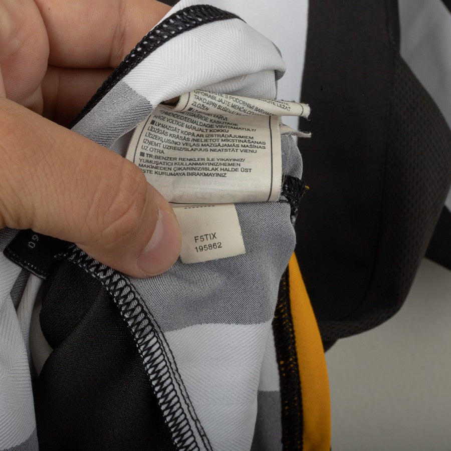 Maglia home della Juventus relativa alla stagione 2005/2006, realizzata da Nike con sponsor tecnico Nike e sponsor commerciale Tamoil ben visibili sul fronte. Il modello presenta le classiche strisce verticali bianconere con dettagli gialli ai lati e due stelle dorate sopra lo stemma del club. Sul retro del colletto è presente la banda tricolore.
