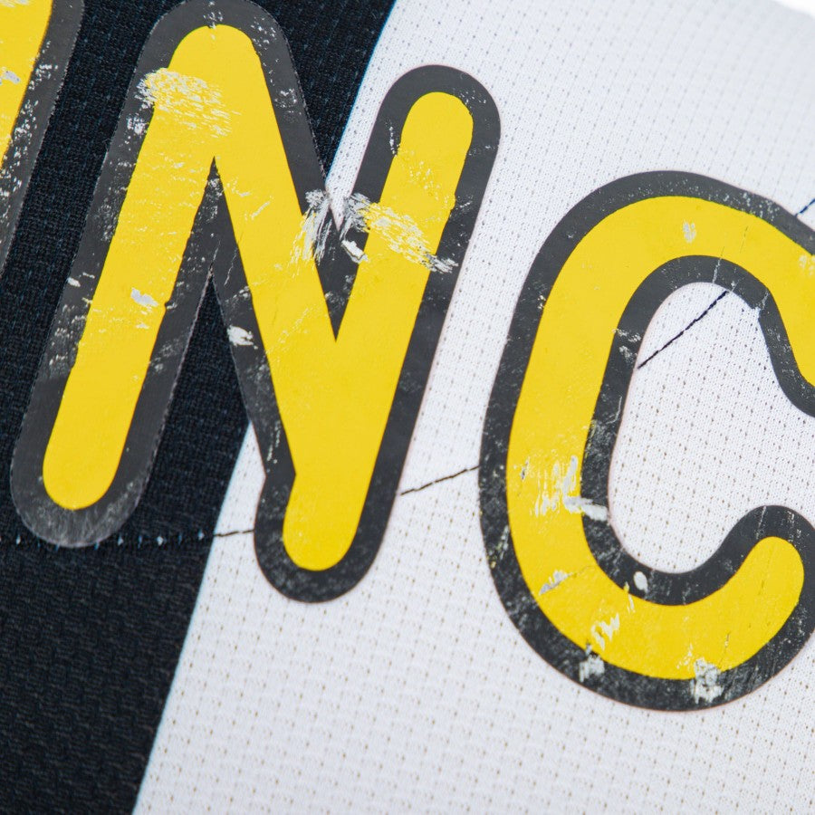 Il prodotto si può guardare bene dalle tante foto a esso inerenti. La maglia è a maniche corte e i suoi colori predominanti sono il bianco di fondo e il nero delle larghe strisce verticali, anche se è evidente la presenza di inserti in colore giallo; in alto a sinistra è applicato il logo del club, mentre dalla parte opposta c'è quello giallo di Nike, sponsor tecnico; al di sotto di tali elementi, ecco lo sponsor commerciale, NEW HOLLAND FIAT GROUP.