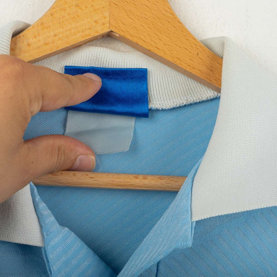 Maglia home ufficiale della S.S. Lazio, stagione 1994/1995, prodotta da Umbro. Design classico con base celeste e finiture bianche su colletto polo e polsini. Colletto a due bottoni con bordino blu. Logo Umbro: applicazione in vellutato blu sul petto destro. Stemma Lazio: patch in tessuto ricamata lato cuore, con aquila dorata e scudo bianco-celeste. Sponsor Banca di Roma: applicazione in vellutato blu sul petto. Dettaglio “EST 1900” ricamato sotto l'abbottonatura.