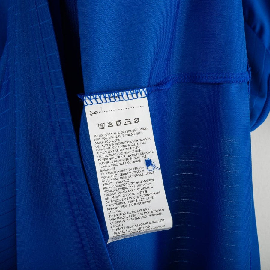 Maglia home del Leicester City prodotta da Puma per la stagione 2016/2017, personalizzata con il nome Vardy e il numero 9. Modello blu con dettagli dorati sulle spalle e maniche. Logo Puma dorato ricamato sul petto destro, stemma Leicester City cucito lato cuore e sponsor King Power stampato al centro. Patch Premier League applicate su entrambe le maniche. Sul retro nome “VARDY” e numero 9 in bianco. Taglia L.