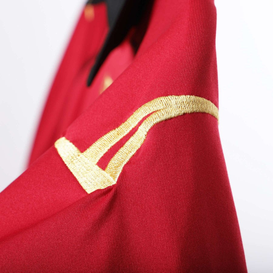 Modello a manica corta e colletto a polo di colore rosso con dettagli neri. Lo sponsor tecnico è Legea e lo troviamo in ricamo sia al centro che sulle due maniche.