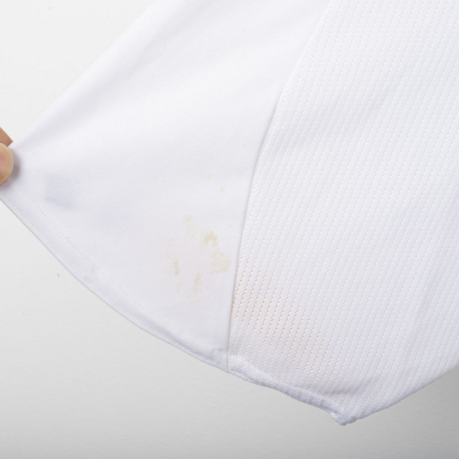 Maglia home dei Los Angeles Galaxy utilizzata nella stagione 2008/2009, prodotta da Adidas. Modello bianco con dettagli gialli e blu navy lungo colletto e maniche. Stemma LA Galaxy cucito lato cuore e logo Adidas ricamato al centro del petto. Sponsor Herbalife applicato in flock sul fronte. Nome Beckham e numero 23 applicati sul retro. Patch MLS cucita sulla manica sinistra. Vestibilità regolare, tecnologia Clima365 per un'elevata traspirabilità. Taglia XL.