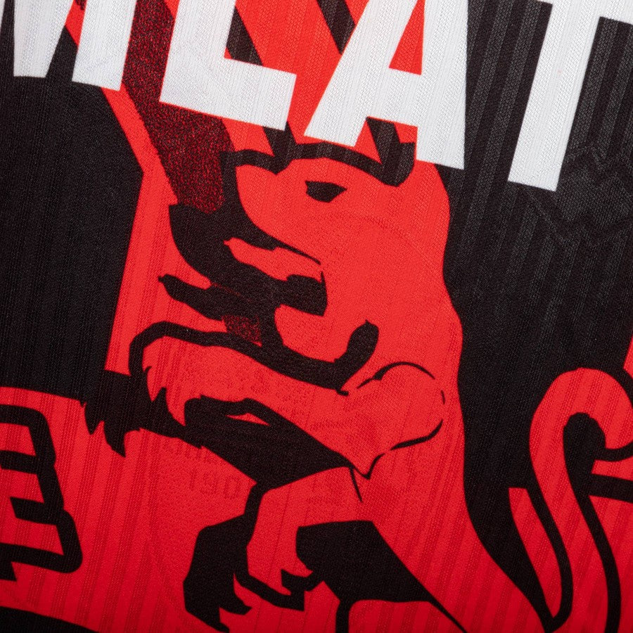 Modello di colore rosso e nero con colletto rialzato. Stemma sulla sinistra e logo errea sulla destra. Sponsor Commerciale Cremlat in basso.