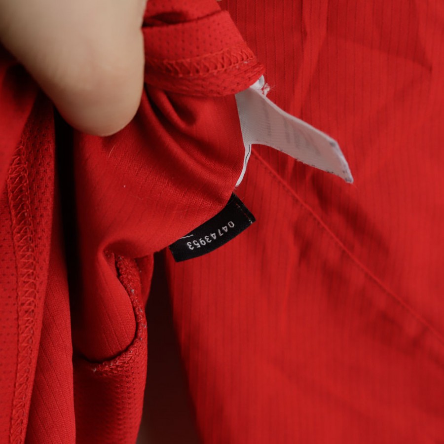 La maglia home ufficiale del Manchester United della stagione 2004/2005, prodotta dallo sponsor tecnico Nike, presenta il classico colore rosso con dettagli bianchi e neri. Lo stemma del club è cucito sul lato cuore, mentre lo sponsor commerciale Vodafone è stampato al centro della maglia. Sul retro, la personalizzazione con il nome Ronaldo e il numero 7 rende omaggio al giovane Cristiano Ronaldo, che in questa stagione si impose come uno dei talenti più promettenti del calcio mondiale. La taglia della maglia mostrata nelle immagini è M.