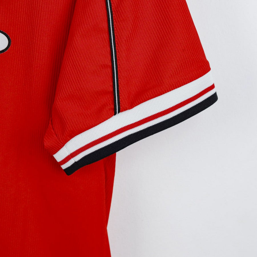 La stagione 1998/1999 è ricordata come una delle più leggendarie nella storia del Manchester United. La squadra, guidata da Sir Alex Ferguson, conquistò il celebre Treble, vincendo Premier League, FA Cup e Champions League. David Beckham fu una figura chiave di quella stagione, famoso per i suoi cross millimetrici e calci piazzati decisivi, come quello che portò al gol di Teddy Sheringham nella finale di Champions League contro il Bayern Monaco. Questa maglia rappresenta non solo un momento glorioso per il club, ma anche l'apice della carriera di Beckham con i Red Devils.